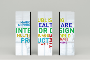 床置きシングルモニタータイプのGLAS LUCE。シンプルなサイネージスタイルでありながらも、GLAS LUCEならではの驚きに満ちた演出性によって、インフォメーションや広告に生き生きと した表情を添えます。また、どこにでも簡単に移動が出来ます。