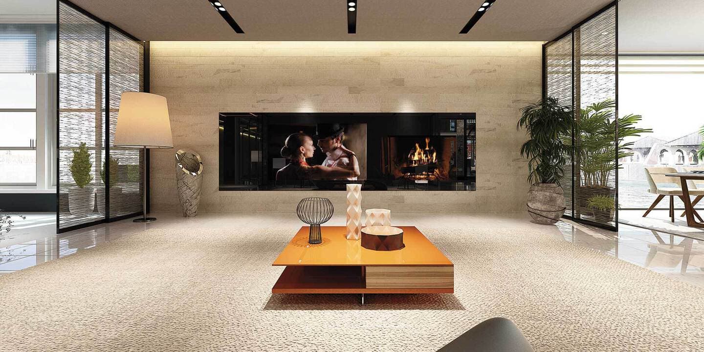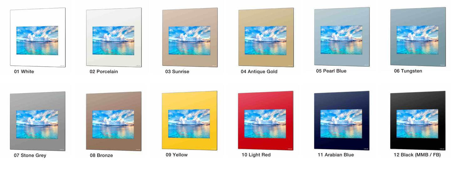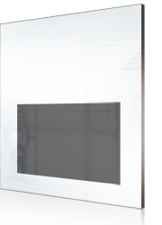 電源をOFFにするとフラットな鏡になります。電源をONにすると鏡特有な室内空間の映りこみを極力押さえて鮮明で美しい映像が映し出されます。また突然現れ始める鮮明な映像はサプライズ的な視覚効果を演出します。MAGIC MIRRORにはブラック、カラーガラスではブラックとホワイト、ミラーの計3種類からお選び頂けます。